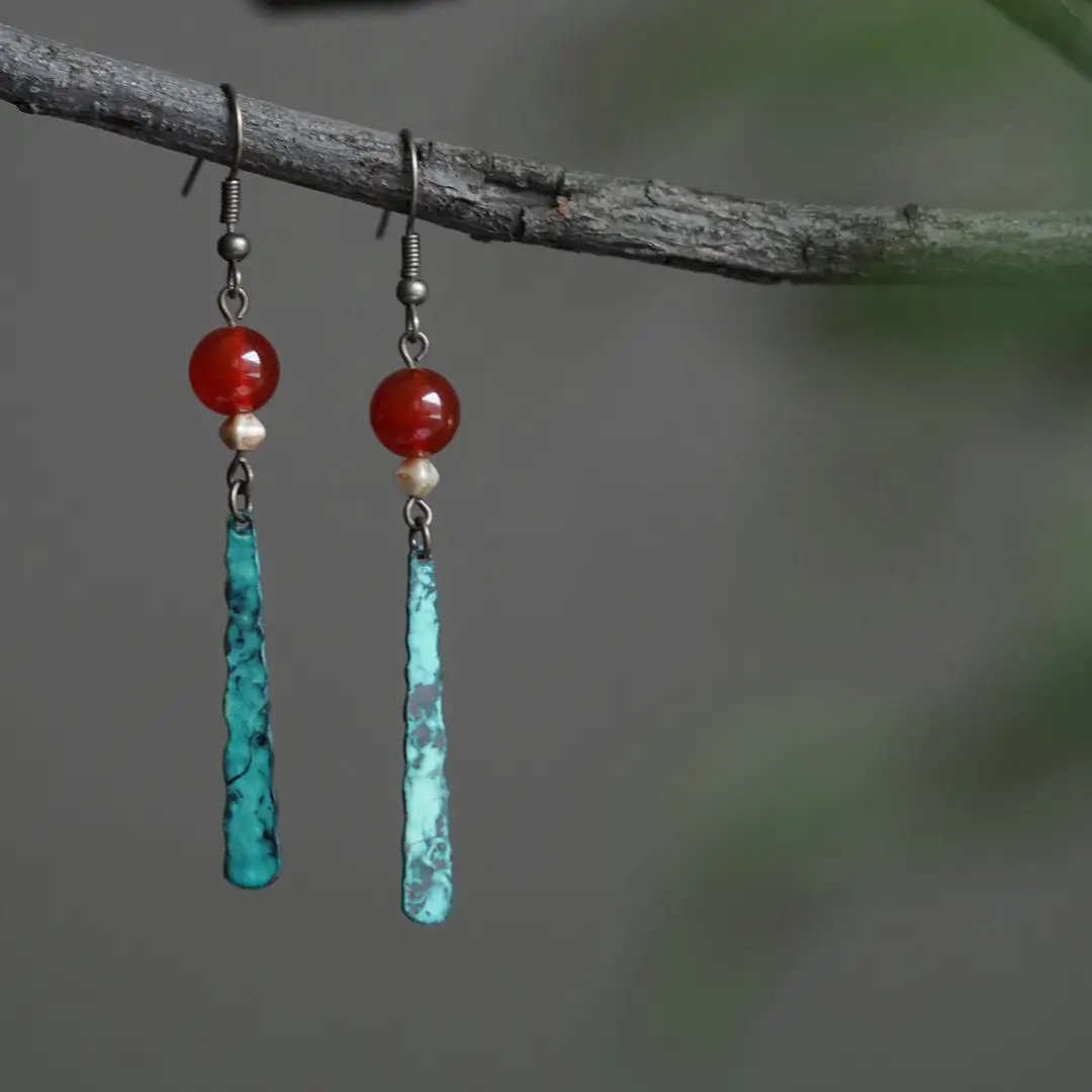 Inspired by the serene beauty of desert murals and turquoise Silk Road skies. These Handmade Green Patina Earrings—known in our studio as the Qing Lan (青澜) collection—reinterpret historical bronze artistry through modern craftsmanship. Blending aged metal with New Chinese style elegance, they bring a quiet cultural sophistication to your everyday wardrobe. Perfect for those seeking Dunhuang-inspired earrings with a timeless, weathered charm.