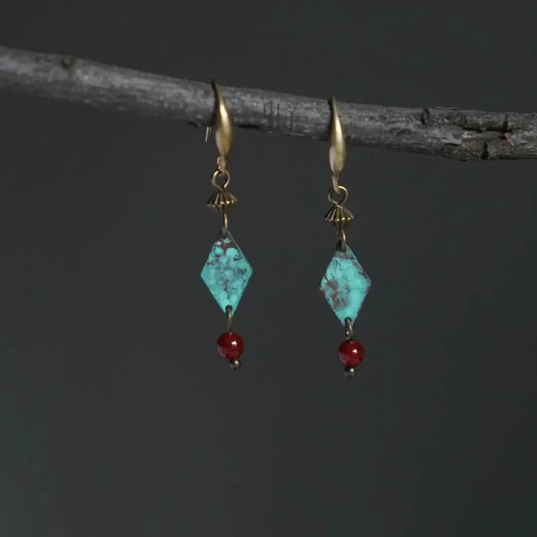 Handmade Green Patina Earrings: The Dunhuang Bronze Collection