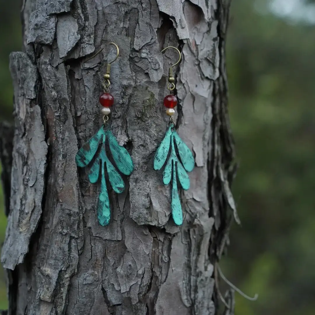 - Artisanal Verdigris: Hand-oxidized green and blue hues ensure each pair of Handmade Green Patina Earrings is unique.