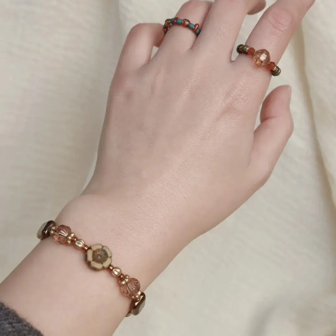 Pair this earthy-toned bracelet with natural fabrics like linen, cotton, or wool for a soft, organic look. Layer it with other earthy-toned jewelry or wear it solo to highlight its muted warmth. It complements both casual outfits and structured silhouettes, such as collared shirts or high-neck dresses.
