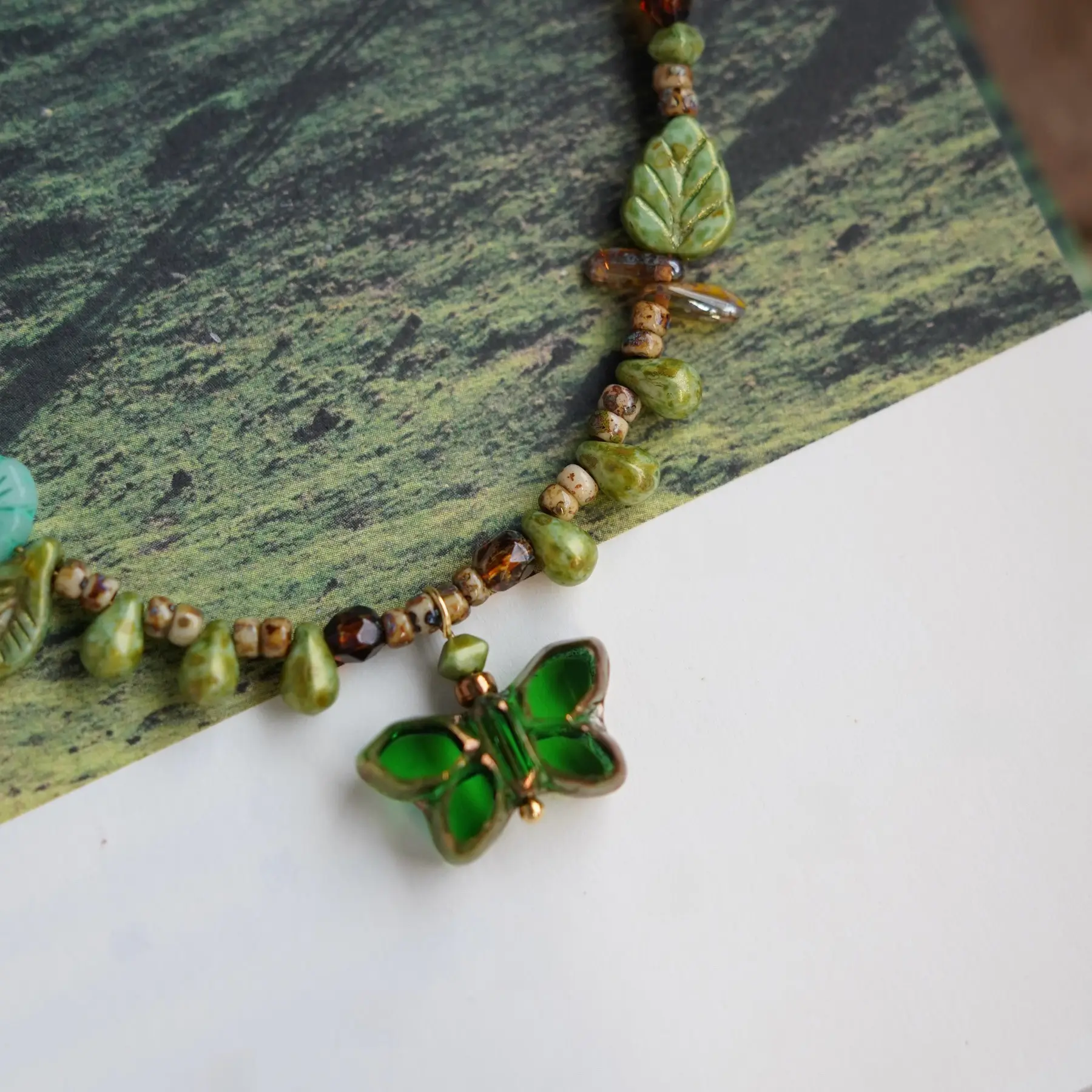 Pair this handcrafted butterfly necklace with the matching green beaded bracelet from the Green Wilderness collection for a harmonious layered style. Whether you are dressing for everyday elegance or a special occasion, this set offers timeless beauty and artistic meaning.