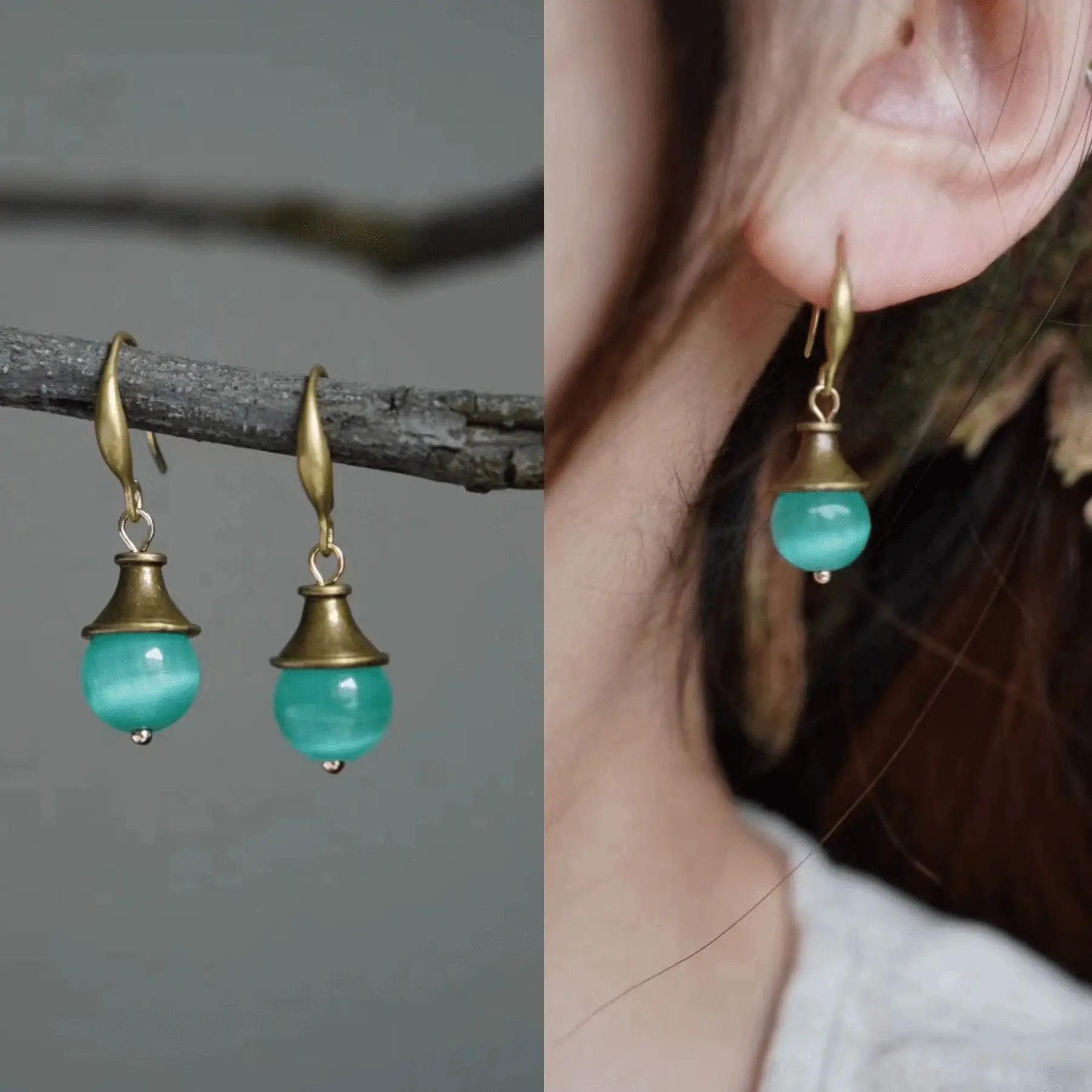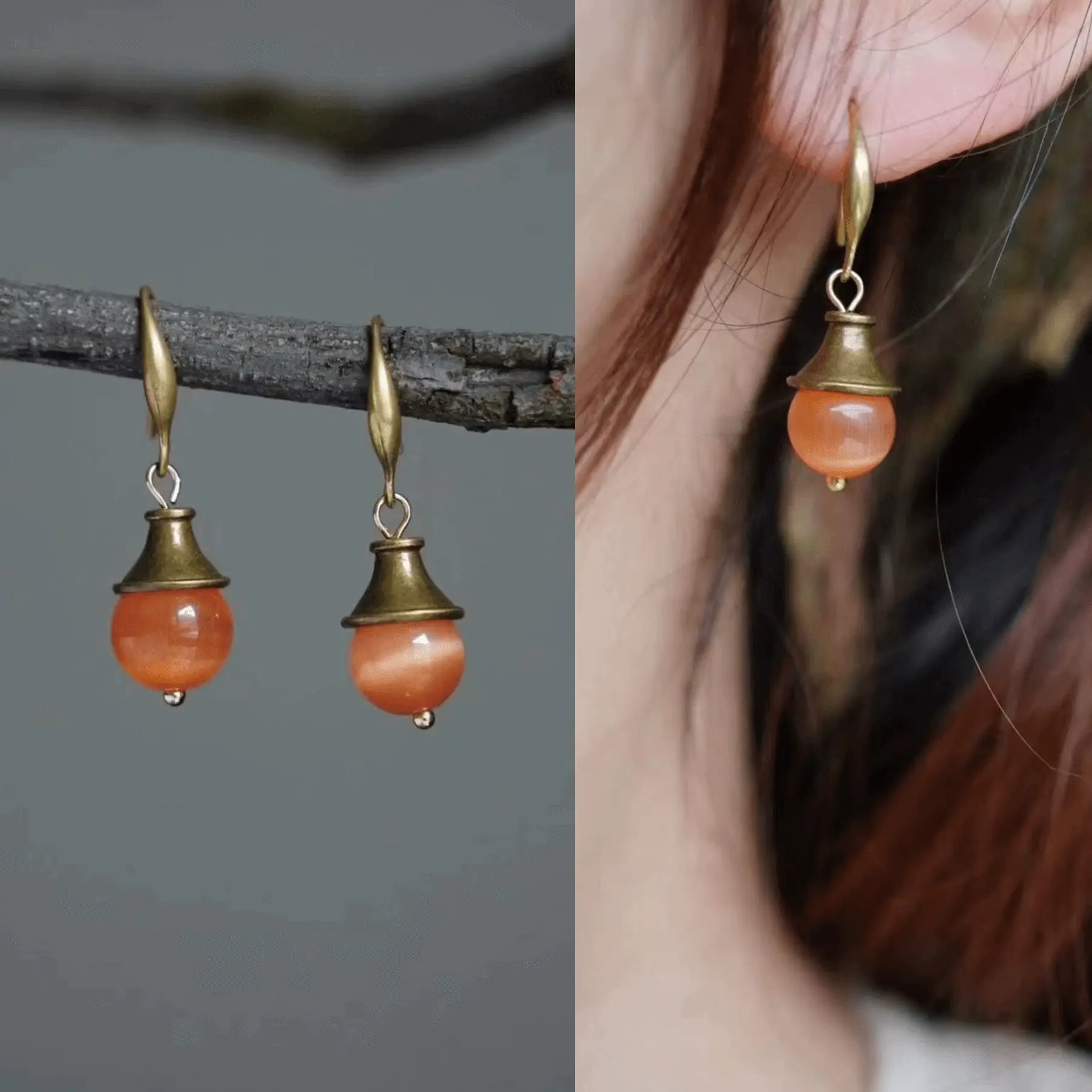 Here’s a fun way to pick based on zodiac energy: - Green (Taurus) – Grounding and gentle. Many say it “pairs beautifully with new Chinese-style outfits” and gives a soft, elegant vibe. - Orange (Leo) – Warm, vibrant, playful. Perfect for summer outfits or creative looks. - Blue (Pisces) – Cool, dreamy, poetic. Customers love wearing it on trips or for romantic, artsy styles. Each earring is handcrafted with natural stones and antique brass hooks, so no two are exactly alike—perfect for showing off your personal style!