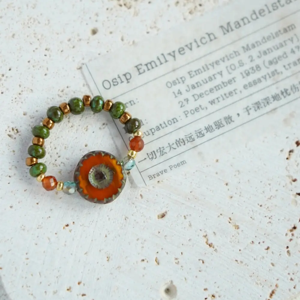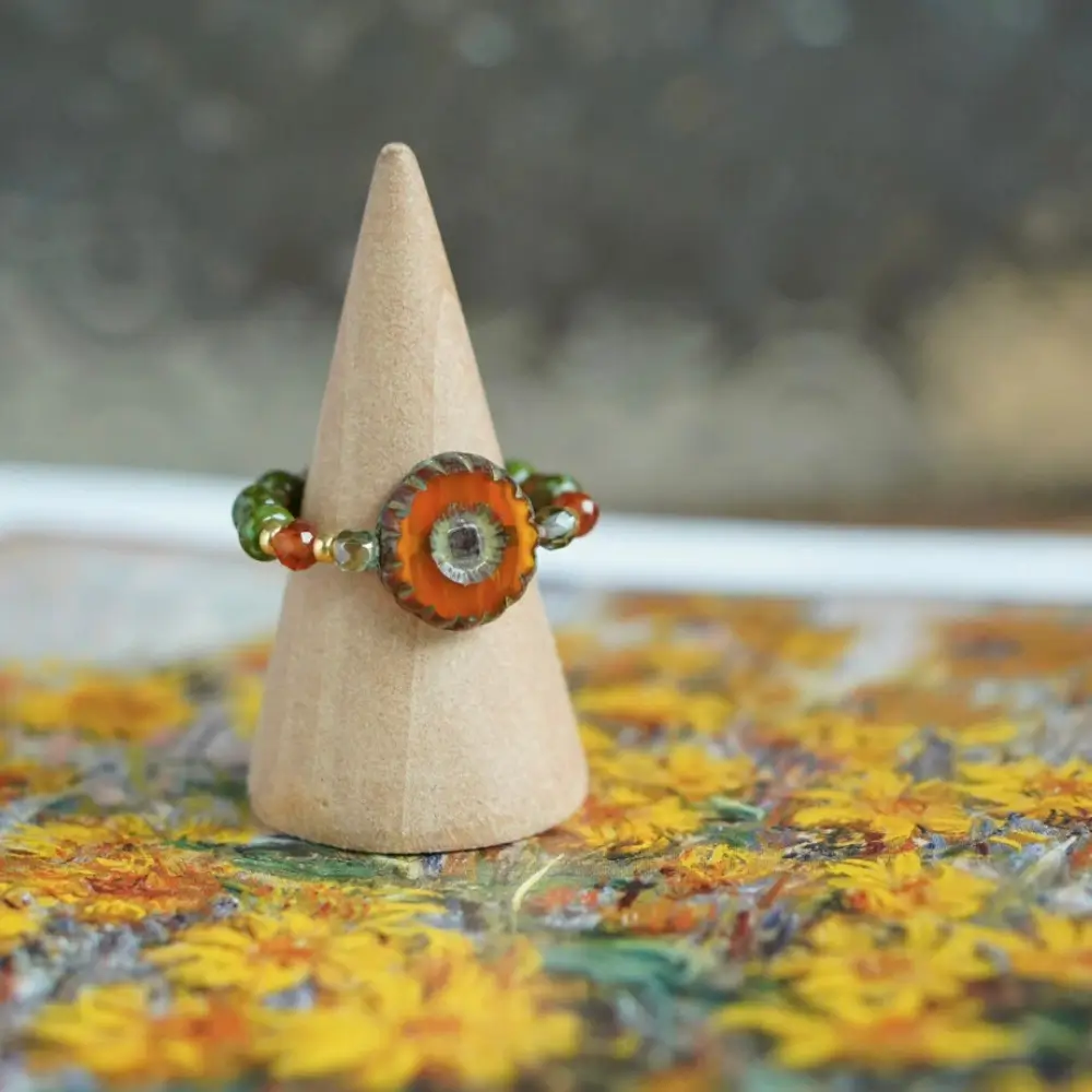 This handmade Czech bead ring brings artistic charm, ideal for students and young women who prefer simple, minimalist style.