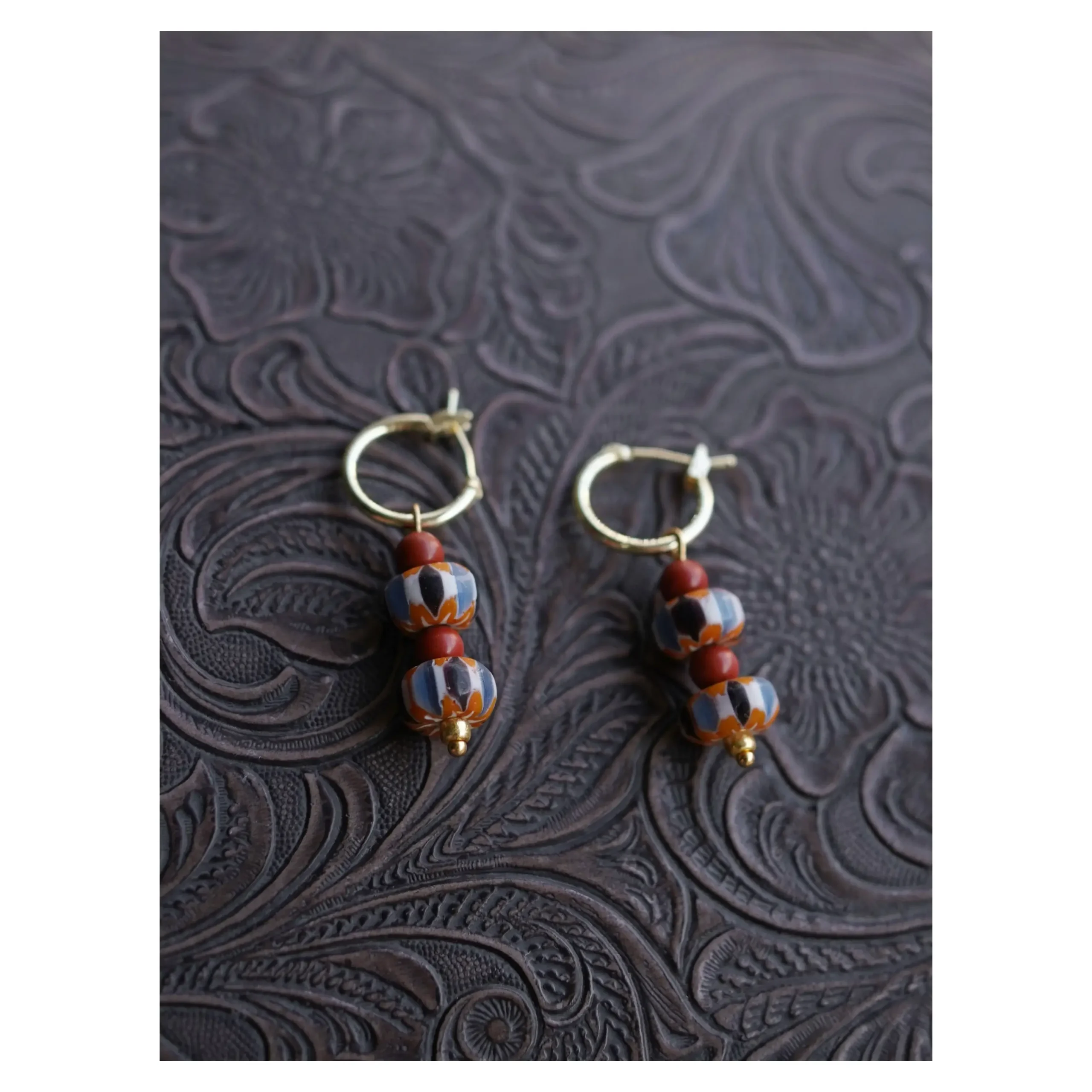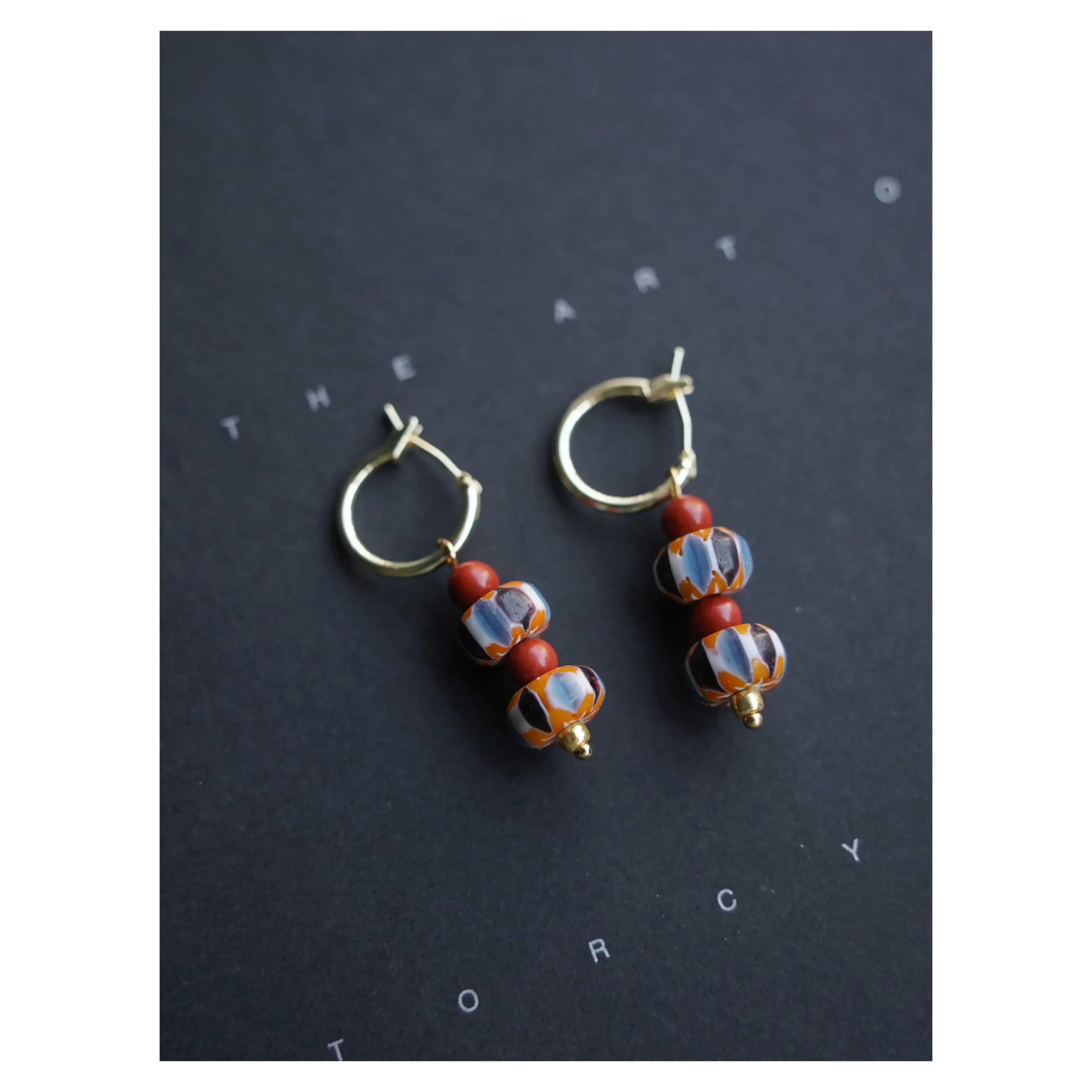 Vintage Czech glass meets warm 14K gold-plated copper, creating a lightweight hoop designed for everyday artful expression.