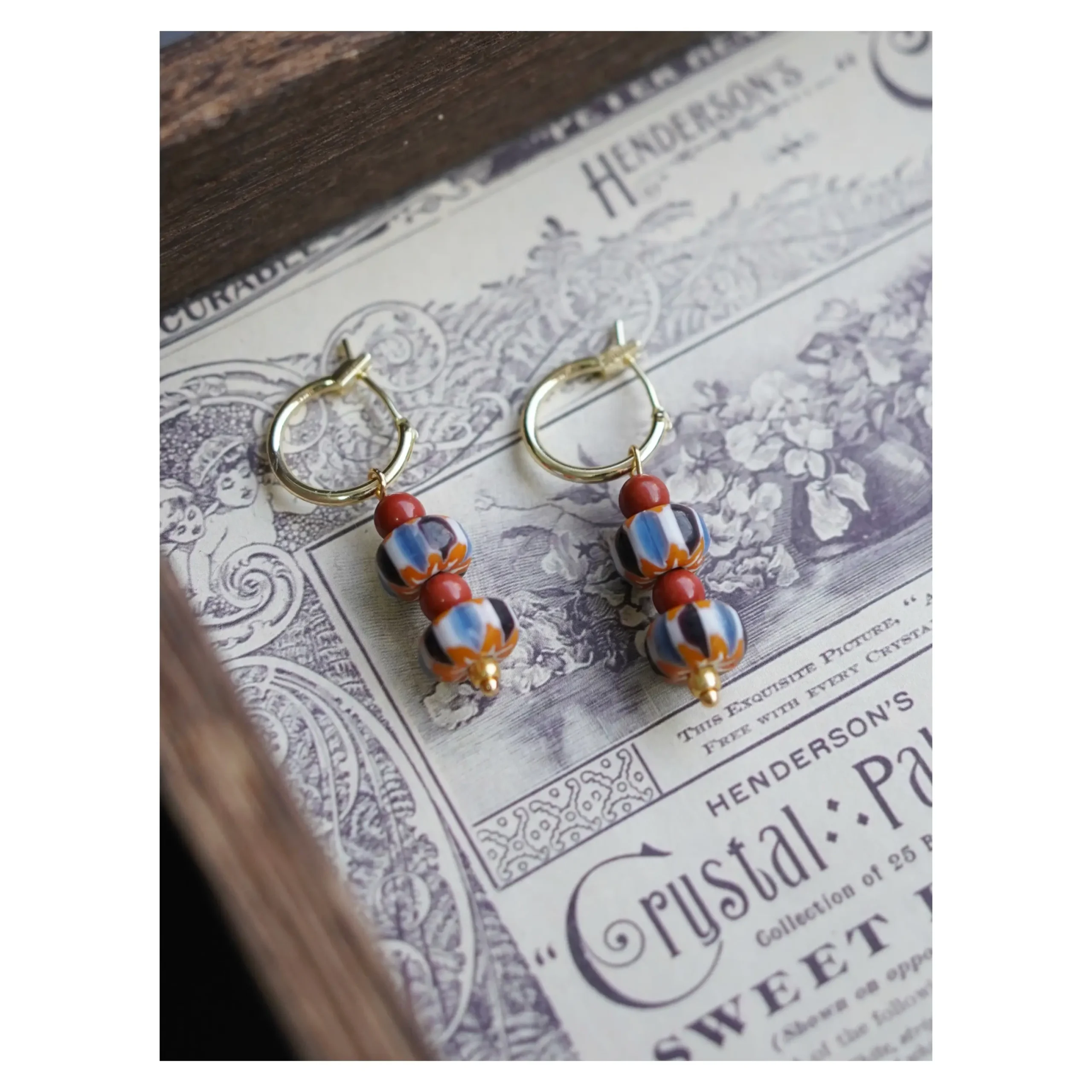 Matisse Series Vintage Czech Glass Hoop Earrings – 14K Gold-Plated Artistic Design