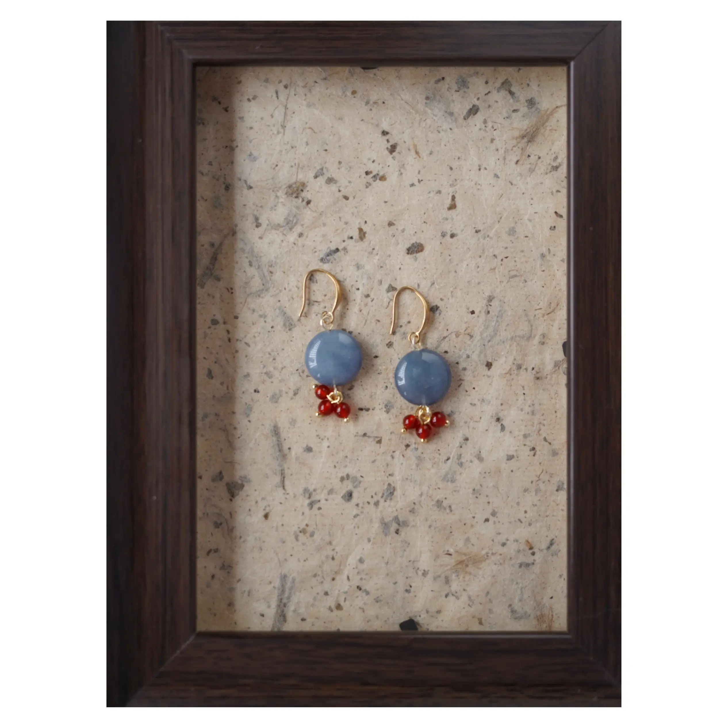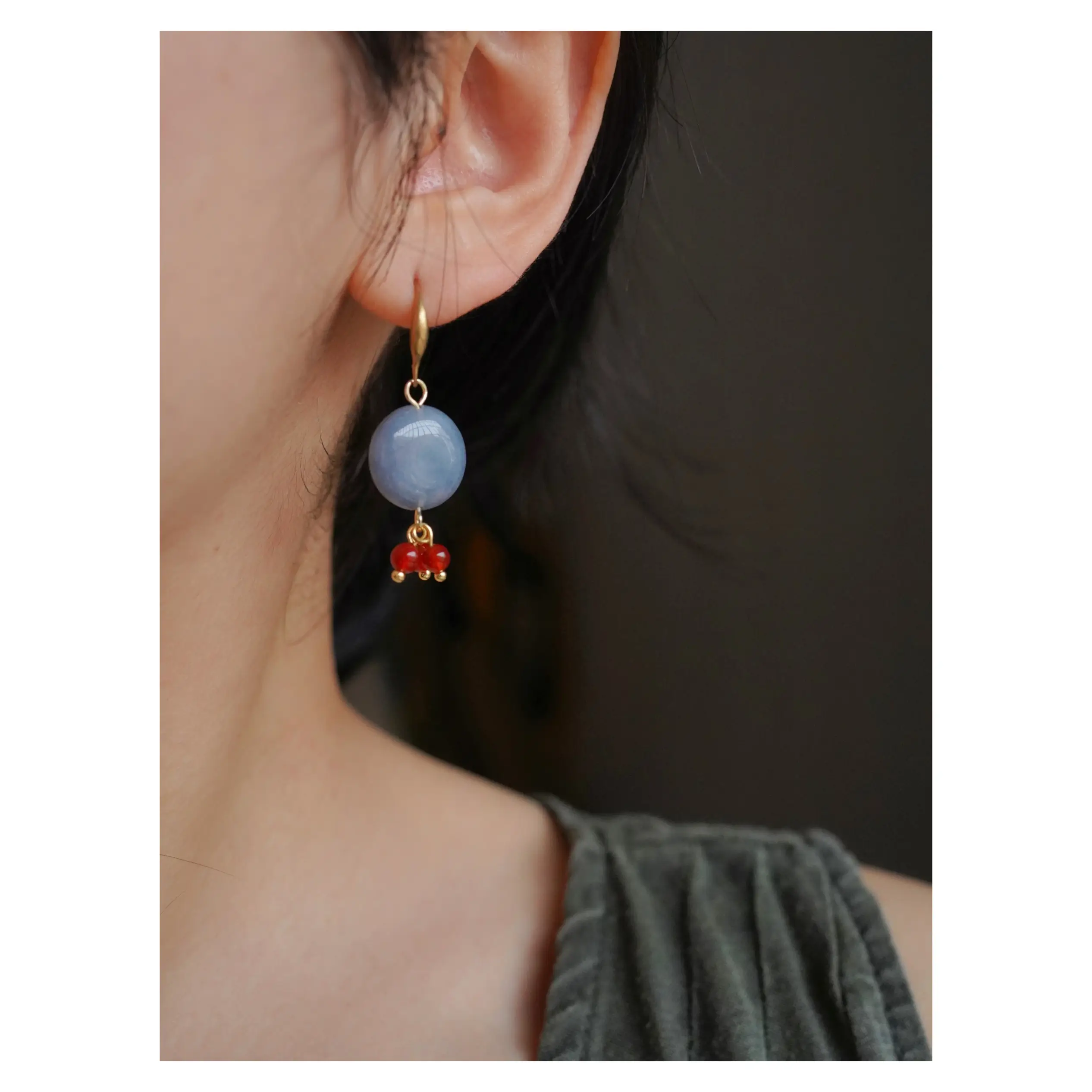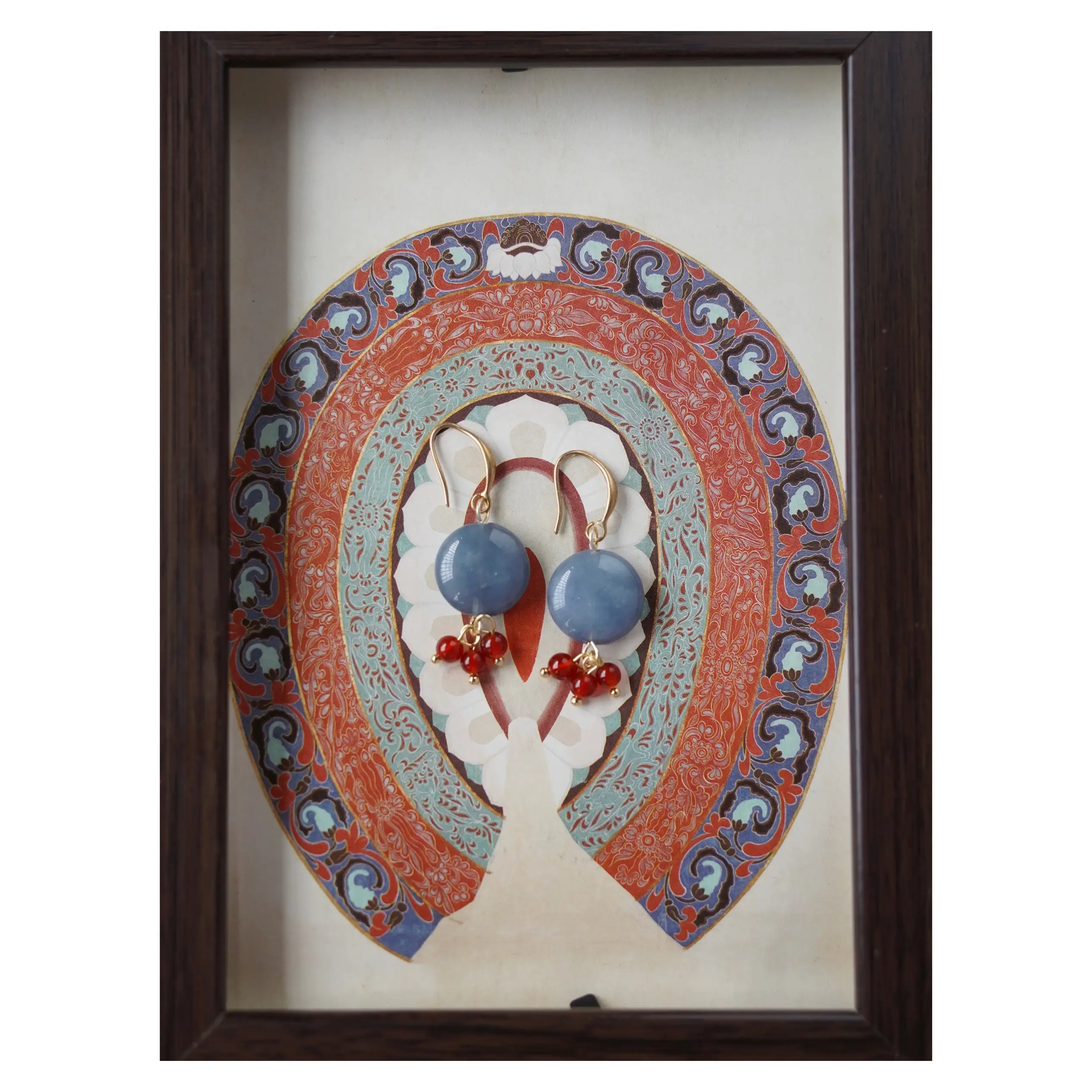 Red Agate Handmade Earrings – Dunhuang-Inspired Blue Chalcedony Jewelry